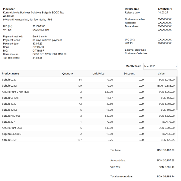 Smart export of data from invoice to clients’ ERPs